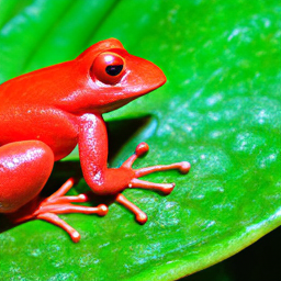 prompt = "a high-resolution photograph of a big red frog on a green leaf."